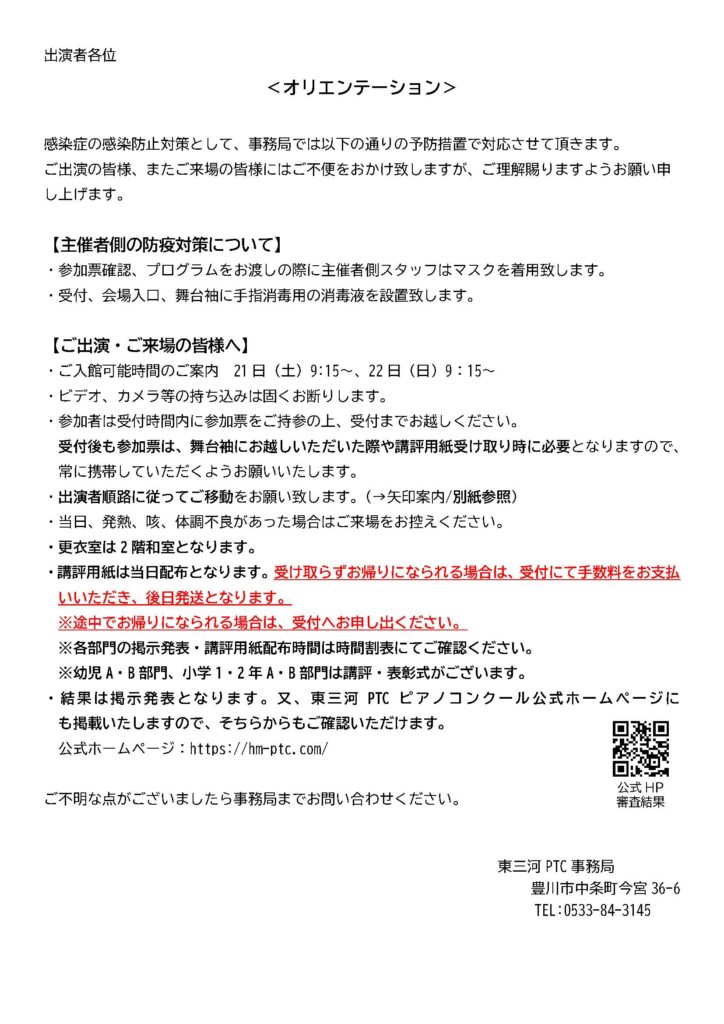 また、当日の出演者順路・オリエンテーション・駐車場案内を掲載いたします。